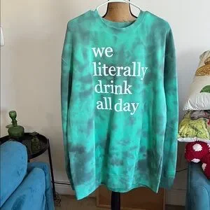 Green tie-dye sweatshirt with graphic text.