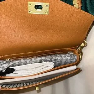 Moncrief Taylor Bag in Latte Color. Brand new with original tags, charm, and dust bag. This elegant tan leather shoulder bag is perfect for any occasion. Its sleek design and high-quality material make it a must-have accessory.