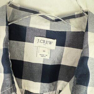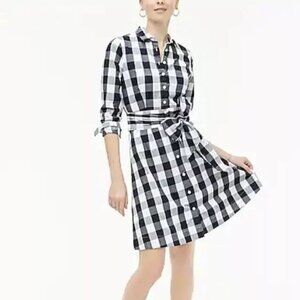 J. Crew Factory Tie-Waist Poplin Shirtdress in Gingham Navy Size 10 EUC