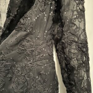 The sequin and 3D flower details add a touch of glamour, while the sheer outer shell adds a touch of elegance. Absolutely beautiful.