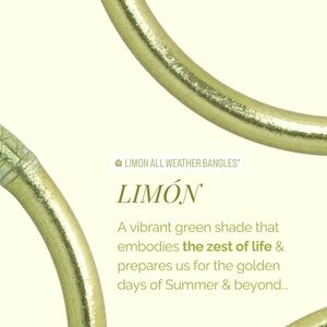 NWT! Size small. Set of 3 bangles only. Brighten your wristscape with BuDhaGirl's Limon All Weather Bangles®. Crisp, energetic lime green bangles bringing freshness, vitality & endless summer vibes. Pouch not included. Original set is of 6 bangles however this listing is just for 3. 🙌🏼