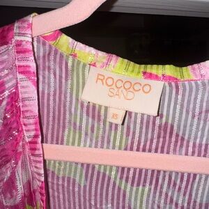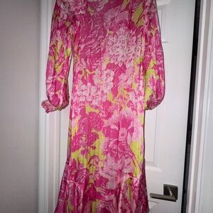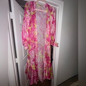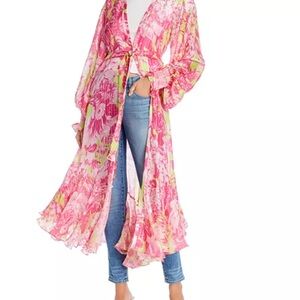 ROCCO SAND ziba coverup kimono neon pink and Green Long floral size XS