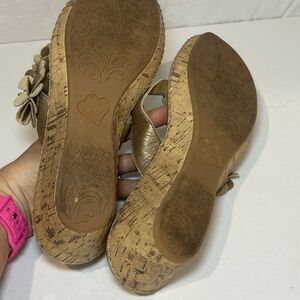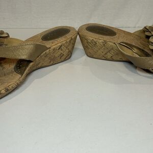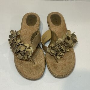 BOC Born Concept Womens Sandals Size 11M Gold Floral Leather Cork Wedge