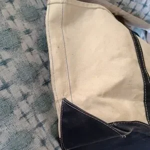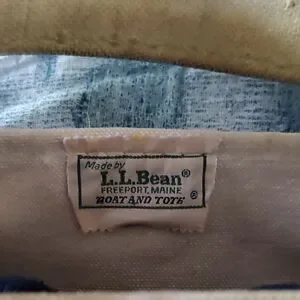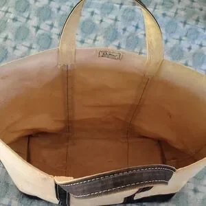 Vintage L.L. Bean Tan and Navy Blue Travel Bag with Minimalist Design