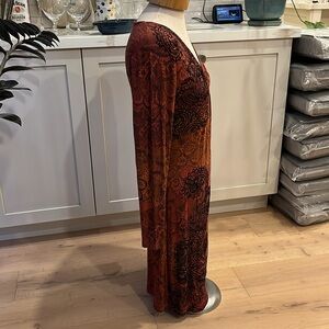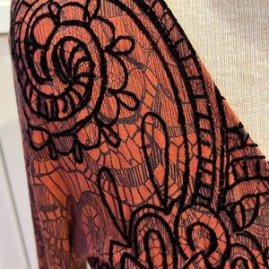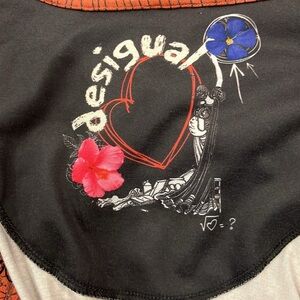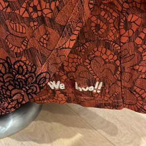VGUC Desigual red faux wrap dress with black floral embroidery.