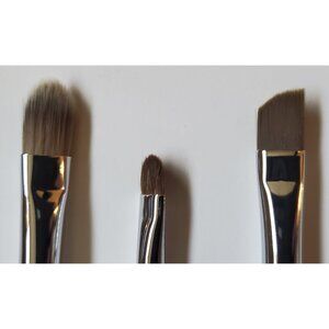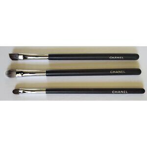 Set of 3 Chanel Makeup Brushes (brushes are used - refer to photos for condition). Also includes 2 velvet brush sleeves (lost the third one) with Chanel logo imprinted, one drawstring bag with Chanel logo, one Chanel envelope and one Chanel shopping bag (large). All items are pre-owned (refer to the photos).