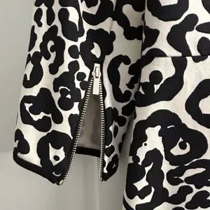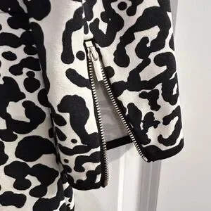 In excellent like new condition. Gorgeous dress! Has some stretch to it. Hidden zipper in the back and zippers on the back of each sleeve.