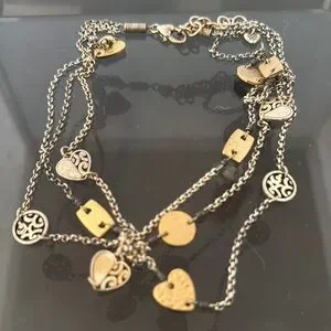 Brighton multi strands Gold and Silver Heart Charm necklace