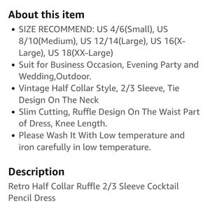 NWT Women's Miusol Retro Half Collar Ruffle 2/3 Sleeve Cocktail Pencil Dress