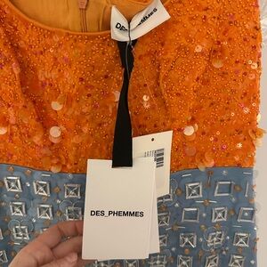New with tags never worn Des Phemmes Mini dress size 8. Bought on Moda Operandi and never worn. Tony black mark on one sequin (pictured, can be fixed with replacement sequins which dress comes with. Otherwise perfect condition.