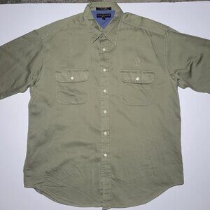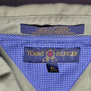 Tommy Hilfiger Golf Mens Army Green Button Up Shirt with Adios Logo Size XL