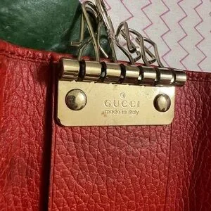 Enhance your style with this Gucci red leather key case, perfectly blending elegance and functionality. Ideal for everyday use, it holds up to 6 keys securely.