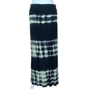 Tie-dye black and green jersey rolltop maxi skirt size M