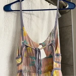 Elegant floral maxi dress featuring an open back design. Soft pastel colors with floral patterns. Gently worn.