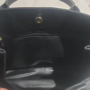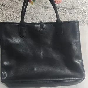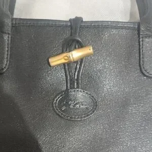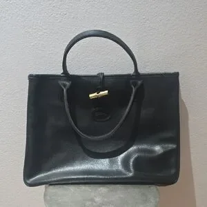This Longchamp satchel in classic black is a sophisticated accessory, featuring a structured design that maintains its shape. Crafted with high-quality materials, it offers a timeless and versatile look suitable for both professional and daily use. please look at all pictures it has normal signs of wear and call out on pictures visible but over all so much life in it no smells inside is clean