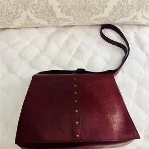 Nordstrom Burgundy Leather Shoulder Bag with Studs Adjusts to crossbody