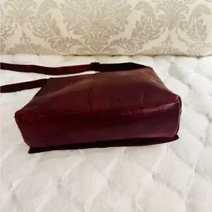 This sophisticated shoulder bag from Nordstrom features a rich burgundy hue with studded design, enhanced by subtle stud accents. Crafted for elegance and functionality, it offers a structured silhouette perfect for any occasion. The comfortable strap ensures easy carrying, making it a stylish addition to your accessory collection. Great quality leather in this unique piece That you won’t find anywhere