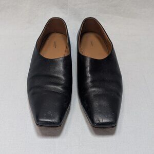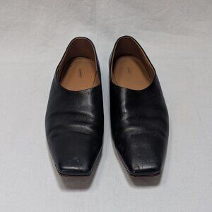 The Row Women's Black Leather Square Toe Flats Shoes Size 38 US 8