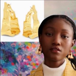 ALEXIS BITTAR • NEW RARE Gold Crumpled Metal 3D Triangle Hoop Hinged Earrings