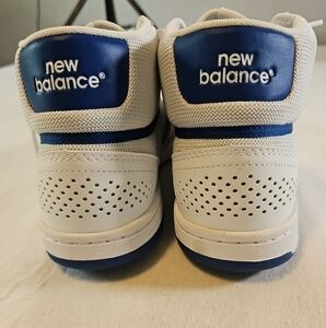 Step up your style with these New Balance men's sneakers. Featuring a sleek white design with bold blue accents, these shoes offer both comfort and fashion. Perfect for everyday wear.