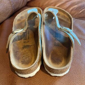 BIRKENSTOCK “Gizeh” Washed Metallic Aqua Sandals Size 39