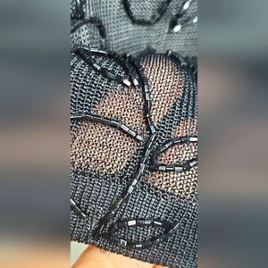 Oscar de la Renta Black Embellished Short Sleeve Top - Knit Beaded