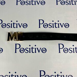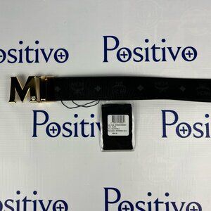 MCM Mens Claus Gold M Buckle Black Leather Reversible Belt Customizable