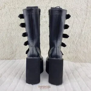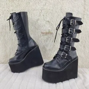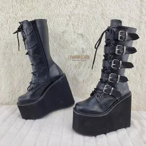 Swing 220 Multi Buckle Black Matte Leatherette Goth Mid-Calf Boot 5.5" Platforms