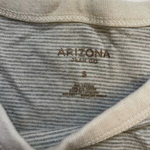 -Features: Arizona Jean size small cream and light gray stripped shirt. No stains or holes.