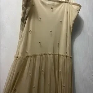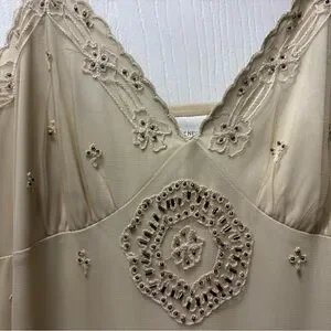 Experience the luxurious feel of this Newport News Vintage-look Dress, designed in a soft cream color. The satin-like fabric is elegantly embellished with intricate floral embroidery/beading, adding a touch of sophistication to your Dress collection. Ideal for special occasions, this piece offers both comfort and style