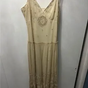 Newport News Cream Vintage-look Dress with Floral Embroidery