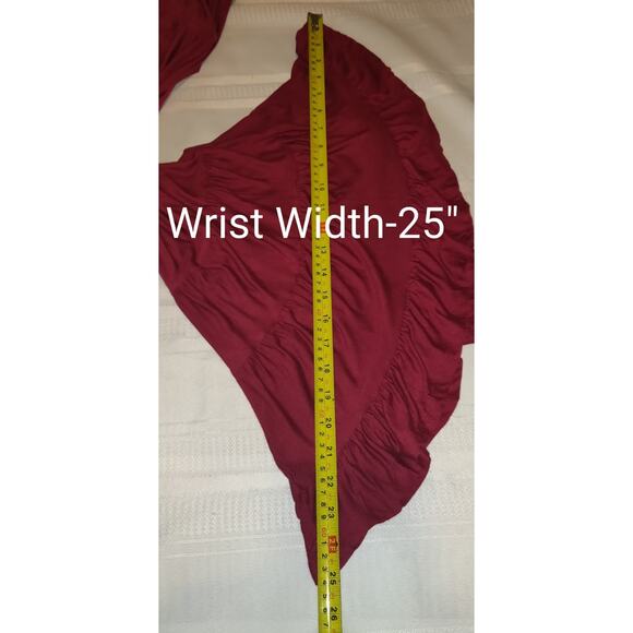 New with Tags Floerns Funky shirt. Love the flared sleeves! Definitely giving me Hippie vibes. Probably the most flared sleeves I have ever seen. The tiered and flared sleeves REALLY make the top! The top itself is not long( see measurements). Burgundy in color. Material is soft and has some stretch.