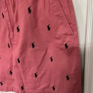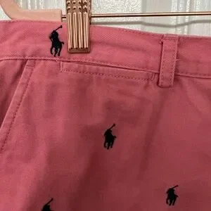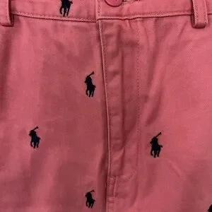 Excellent condition. Only worn a handful of times. No holes or stains. Functional pockets and additional back button pocket. Double button and zipper closure. Pink with navy blue embroidered logo.