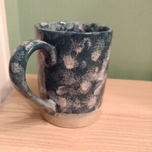 New never used handcrafted glazed pottery mug in a beautiful mottled blue and white glaze pattern on it's body and handle. So pretty! It's large too, bigger than average coffee mugs, measures approximately 5in tall. Just a beautiful mug 😊😍🥰☕