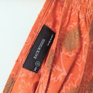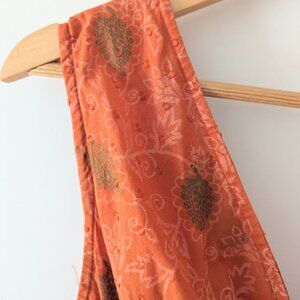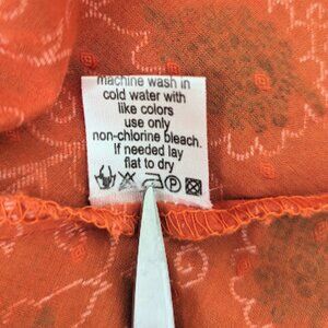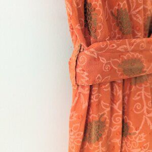 Pre-owned in excellent condition. There is a stitched adjustment to the left shoulder as seen in 8th photo. Can be removed if necessary. Great feminine fit and beautiful gold print through out.
