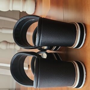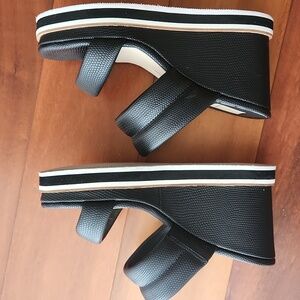 Used condition, Dolce Vita Osiris Wedge Sandal in Size 7.5, Black Snake Print. Wedge measures about 3.75 inches. Lightweight and comfy. Worn several times. See all pics for imperfections, includes stock photo.
