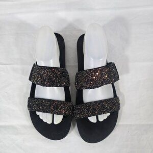 Reef Women Size 10 Glitter Slides Sandals Black Open Toe Slip-On Strappy Casual Beach Travel Resortwear. Pre-owned
