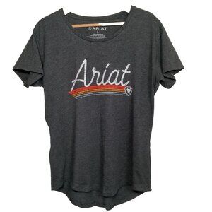 Ariat Shirt Women Size Large Gray Cotton Blend Orange Stripe Western Wear Ranch