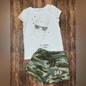 GAP Llama T-Shirt and Camo Shorts Set size 8/10