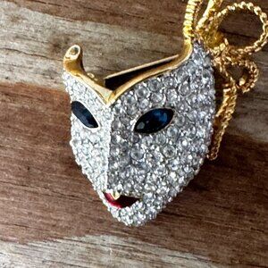 Vintage Swarovski Mask Pave Crystal Masquerade Brooch