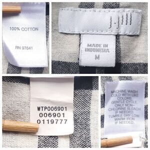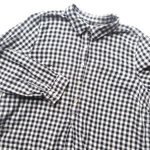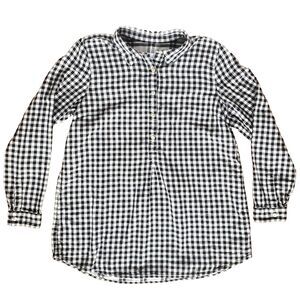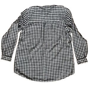 J Jill Top Womens M Gingham Check Plaid Popover Black White Tunic Double Cloth