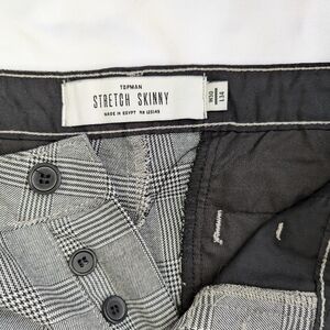 Elevate your formal wardrobe with these Topman dress pants, featuring a sleek black and white design. Crafted for a tailored fit, they offer a sophisticated look perfect for any dress occasion. The smooth fabric ensures comfort and style, making them a versatile addition to your collection.