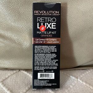NIB Revolution Retro Luxe Matte Lip Kit in Grandee. Includes lip pencil and liquid lipstick. LIP LINER is 0.03 oz. Liquid Lipstick is 0.18 FL. OZ. Smoke & pet free home.