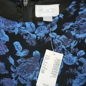 NWT! Place Special Occasion Elegant Blue Floral Kids Dress; 16