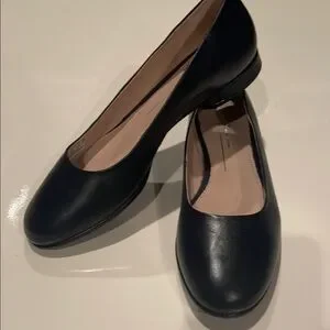 Step out in style with these classic navy blue leather ballet flats. Perfect for any occasion, these shoes offer both comfort and elegance.
