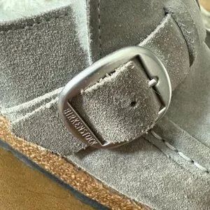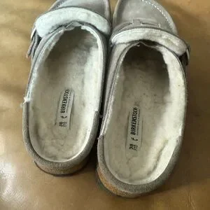 Birkenstock Gray Suede Buckley Shearling Clogs Excellent Condition 7.5 US 38 EU