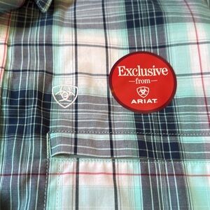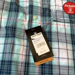 30 % off for party! NWT Ariat brand Men's Blue Plaid Short Sleeve Shirt