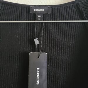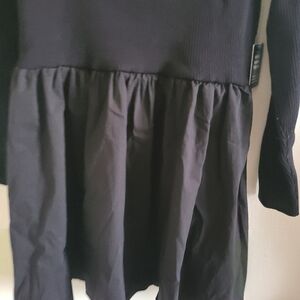 NWT Express Black Ribbed Square Neck Poplin Mini Fit And Flare Dress