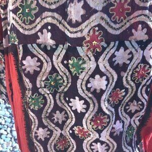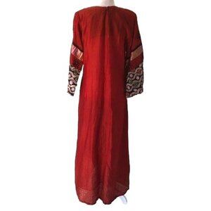 Embellished Caftan Womens Vintage Ethnic Red Black Zip Gold Threading Block Dyed