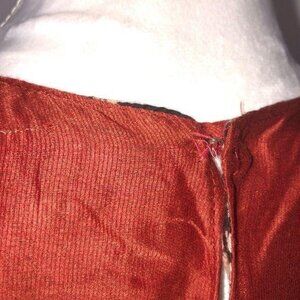 Color is a beautiful shade of rusty red with tan, black and green.